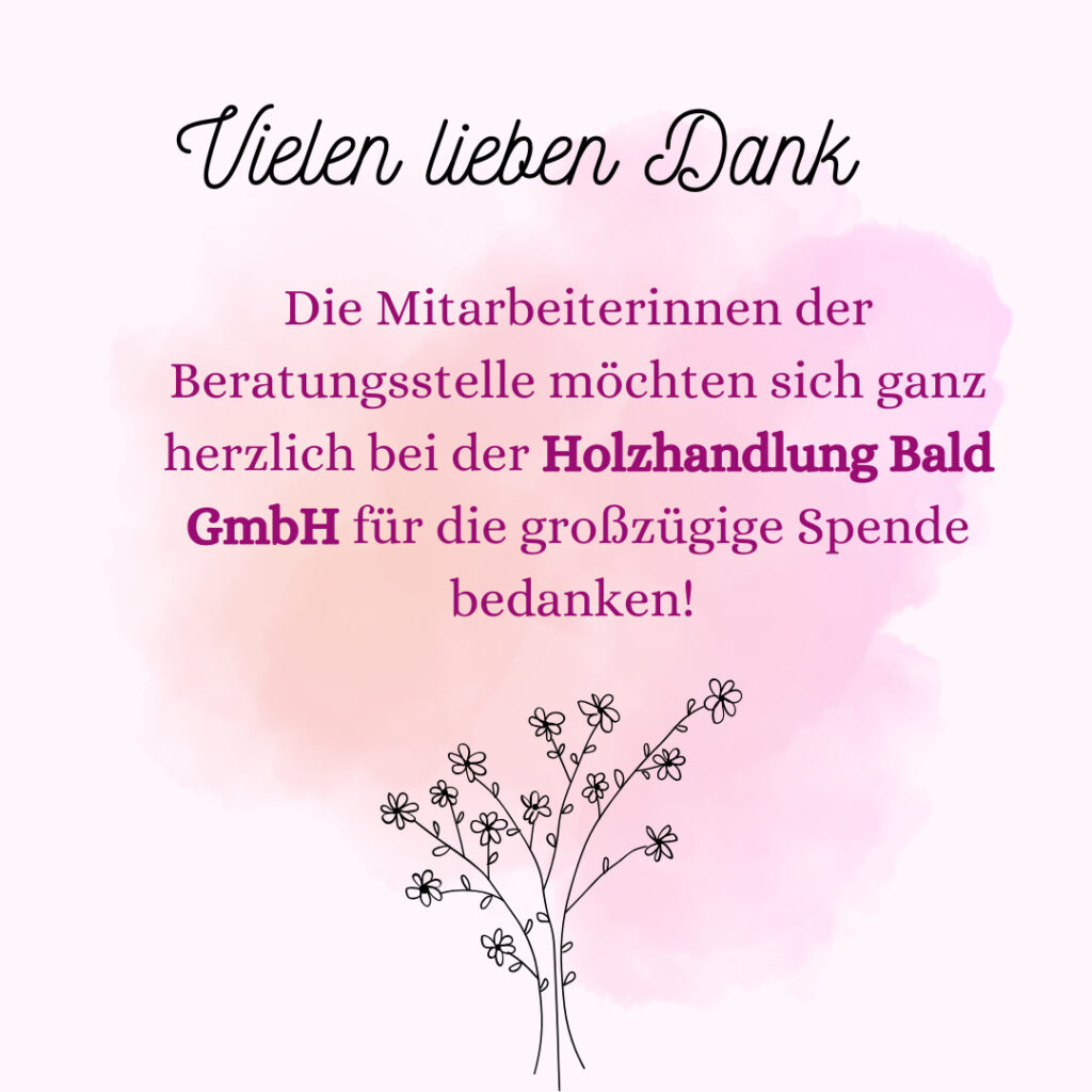 Holzhandlung Bald spendet Beratungsstelle FÜR MÄDCHEN IN NOT