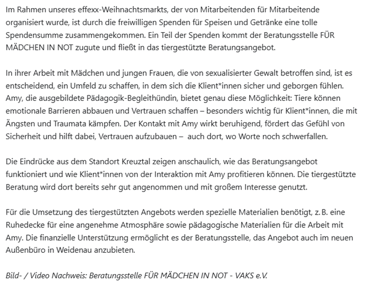 Tierische Unterstützung von Effexx für die Beratungsstelle